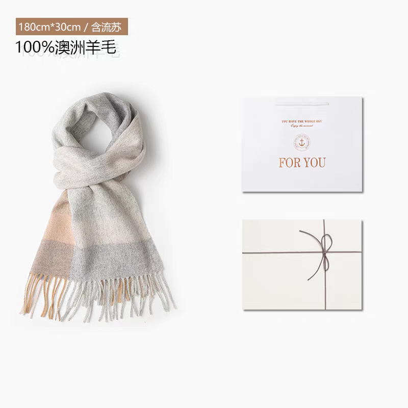 100%羊毛围巾女冬季简约高级生日礼物公司年货送女友闺蜜礼盒装
