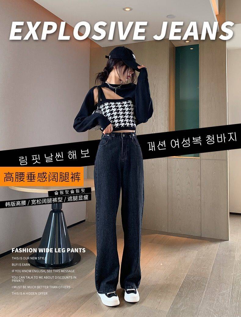 加绒高腰阔腿牛仔裤女2022年秋冬新款显瘦垂感宽松百搭直筒拖地裤