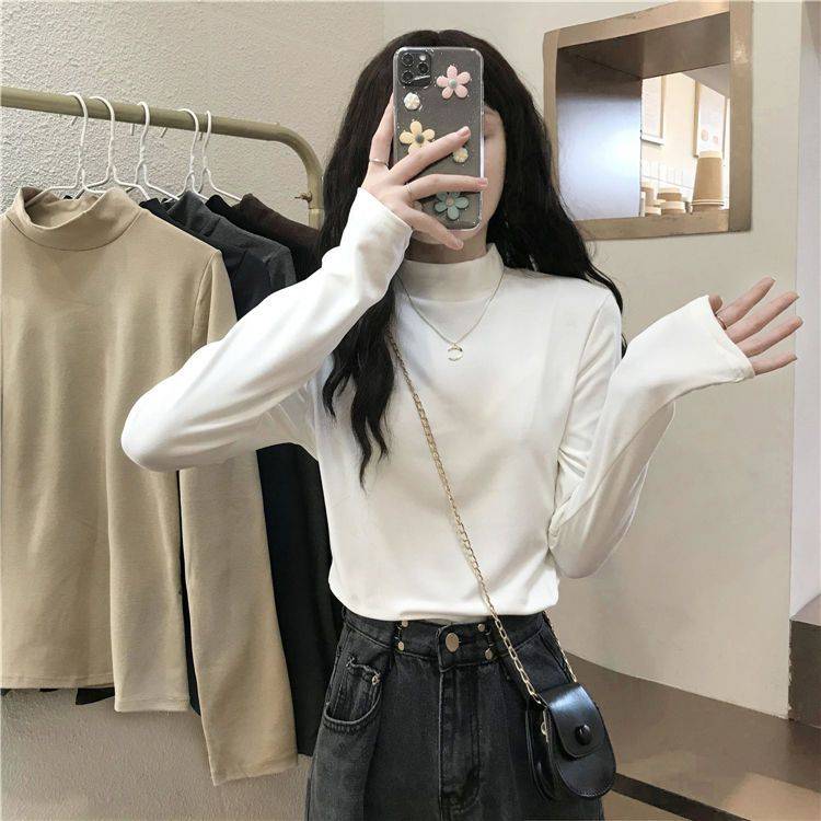UNIITY加绒加厚打底衫女秋冬德绒半高领洋气内搭长袖t恤上衣女
