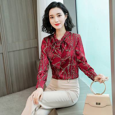 2019秋冬女装春装新款上衣连衣裙百搭打底衫女长袖雪纺衬衫t恤女S