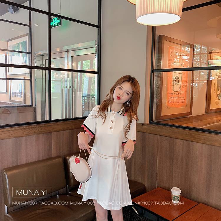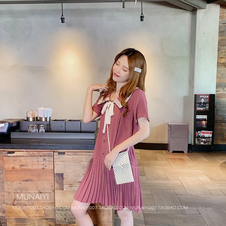 复古娃娃领百褶连衣裙女学生韩版2019新款夏学院风小清新衬衫裙子