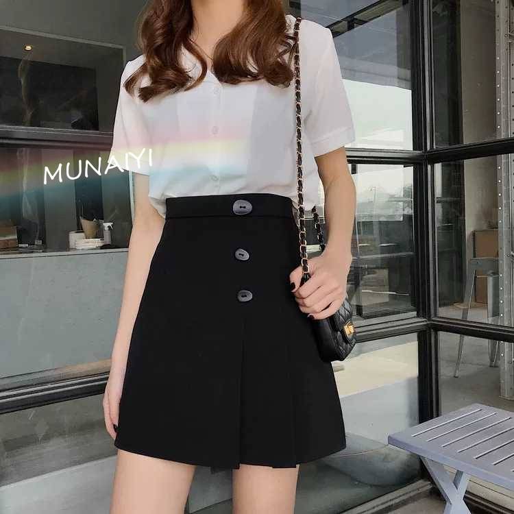 高腰显瘦半身裙女学生韩版2019新款春季女装黑色短裙A字潮