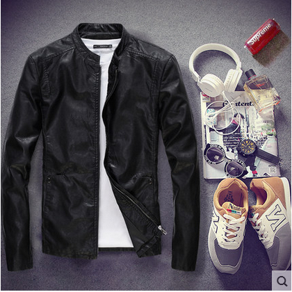 青年韩版修身短款立领秋季皮衣外套薄款皮夹克