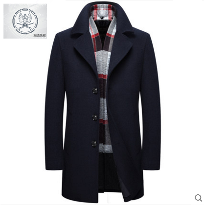 男士中长款毛呢大衣围巾领保暖呢子风衣中年羊毛大衣外套加厚外套