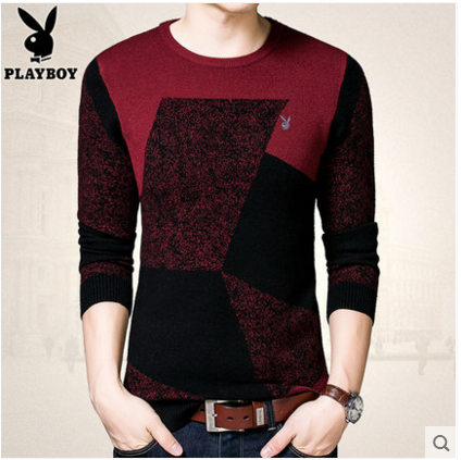 花花公子男士毛衣秋冬季圆领套头针织衫长袖t恤青年线衣韩版男装