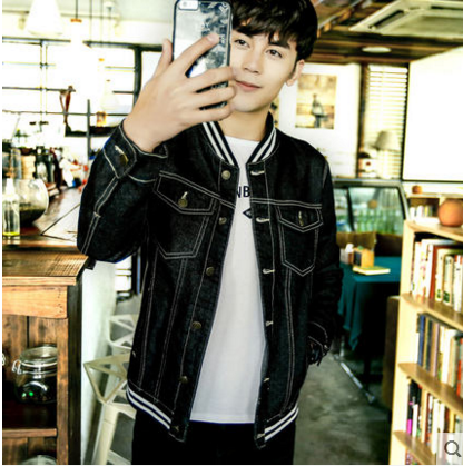 春夏潮男装新款棒球服黑色牛仔外套男青年韩版外衣复古休闲夹克男