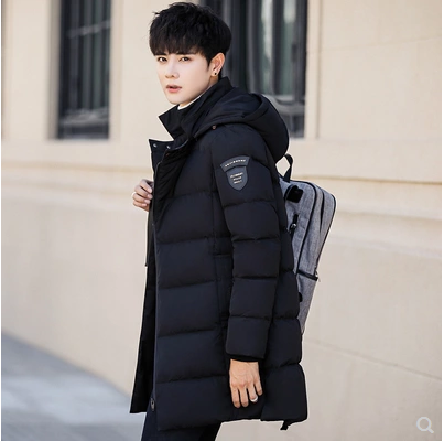 男装反季羽绒服男中长款韩版2018新款青年潮牌连帽加厚冬季外套