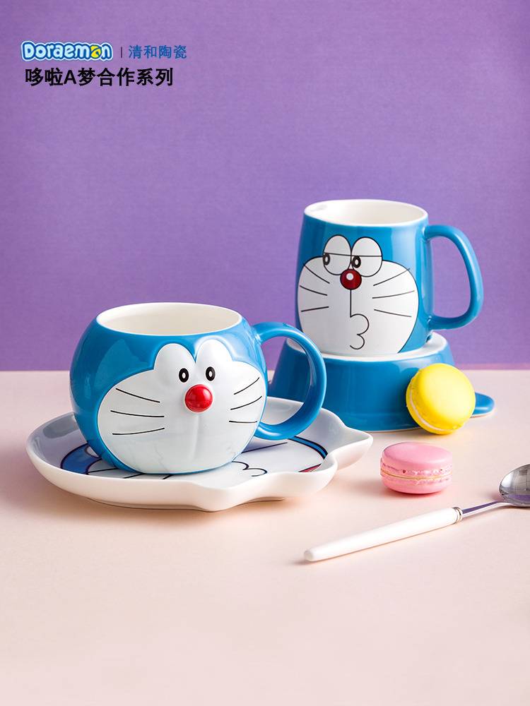 官方正版哆啦A梦马克杯带盖水杯子机器猫蓝胖子可爱生日卡通陶瓷