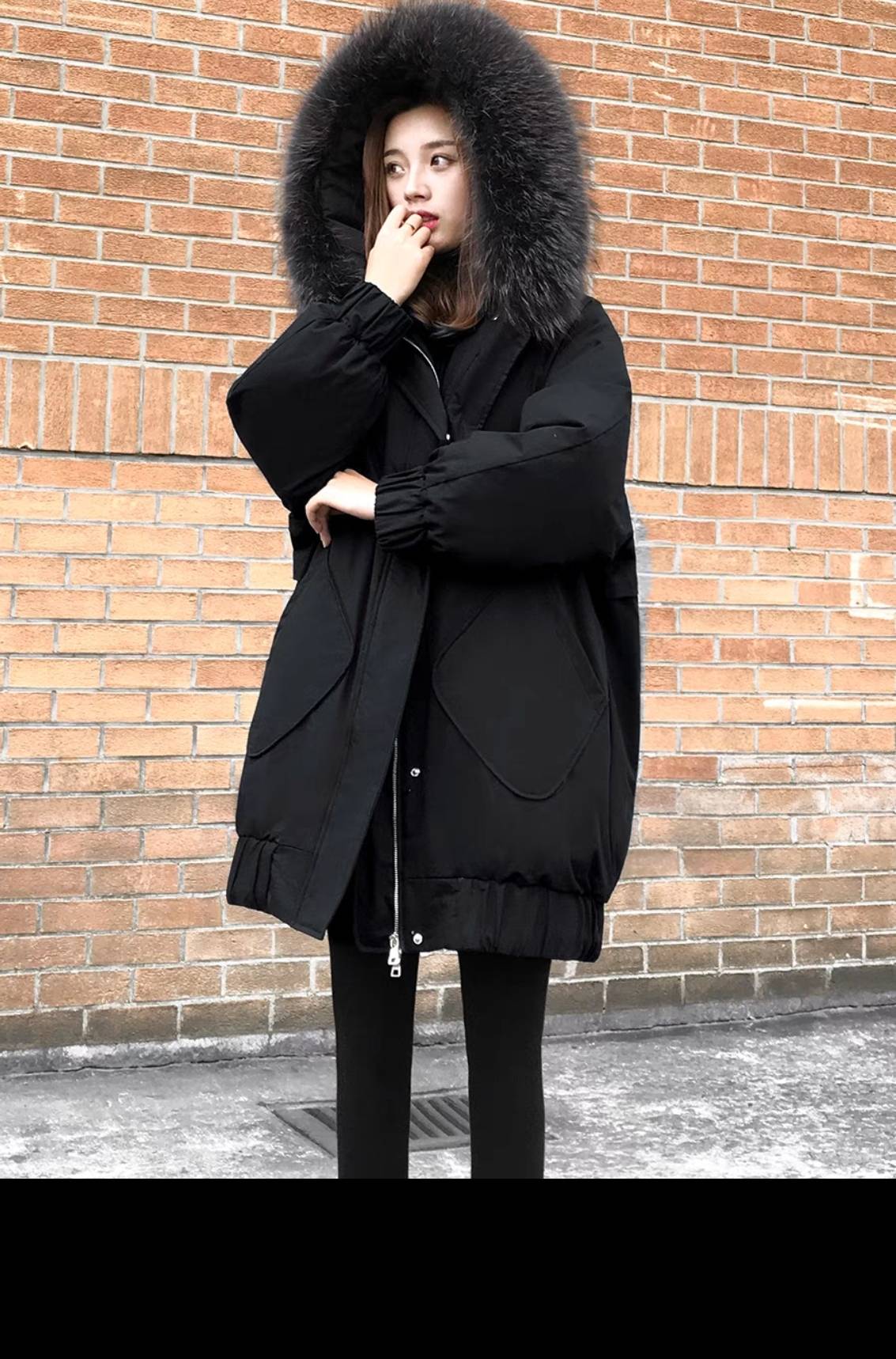 白鸭绒黑色羽绒服女装2023年新款冬季中长款宽松显瘦大码加厚外套