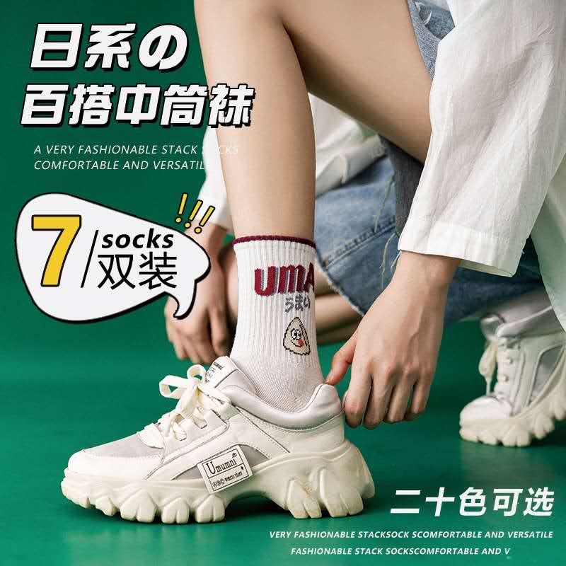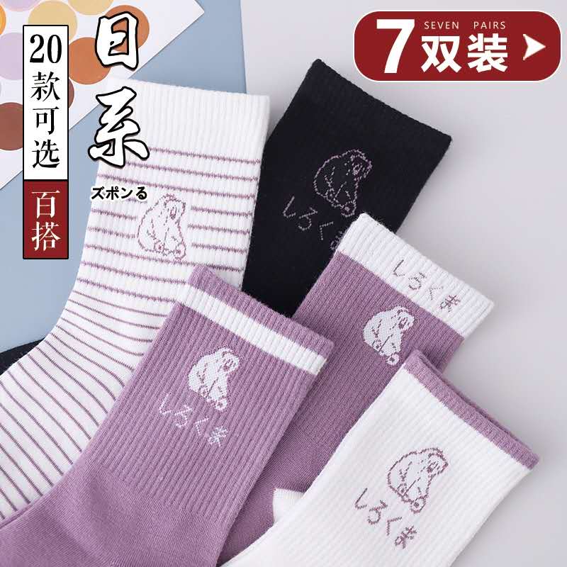 袜子女中筒袜纯棉四季薄款ins潮短袜女可爱日系全棉春秋款学院风