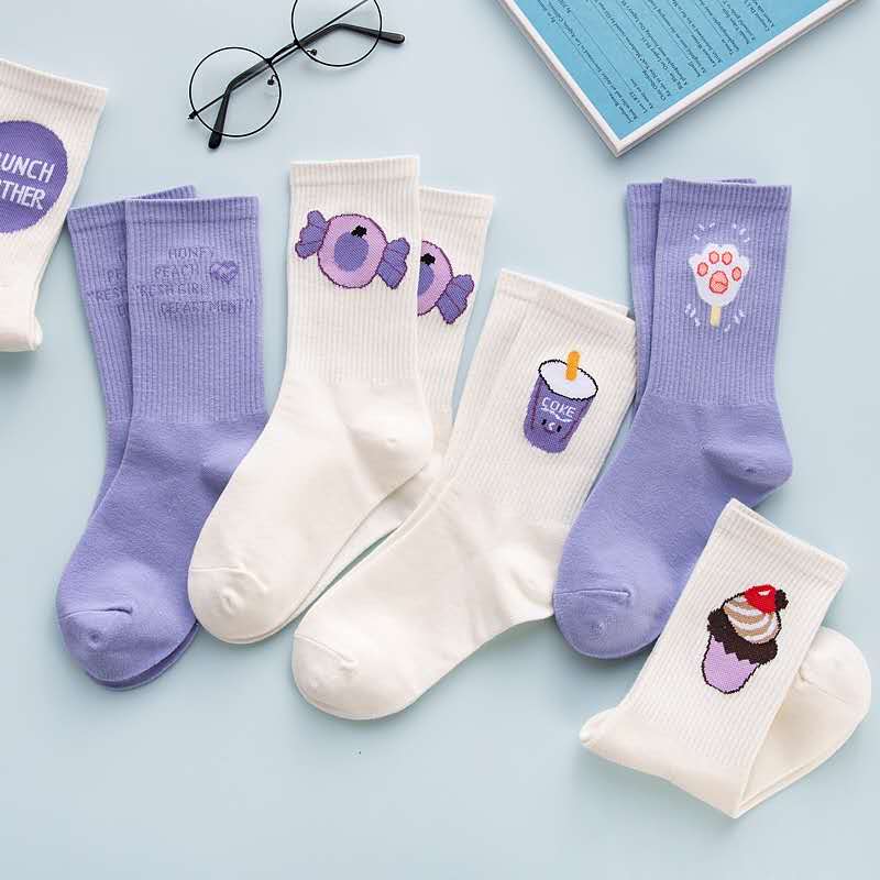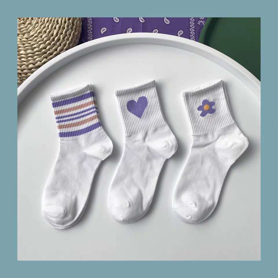 袜子女中筒袜纯棉韩版日系可爱秋冬厚长袜学生袜ins潮紫色网红袜