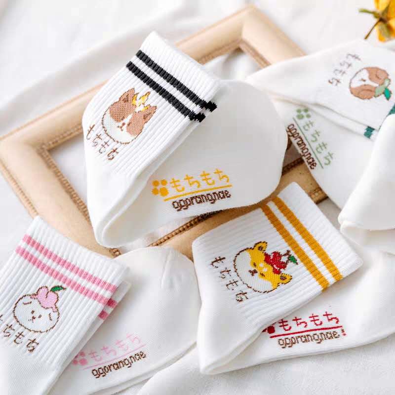袜子女中筒袜ins潮可爱日系刺绣中长款春秋四季纯棉网红韩版长袜