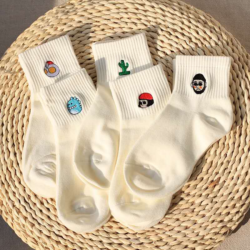 白色袜子女中筒袜纯棉韩版学院原宿刺绣运动袜子秋冬女士百搭袜子
