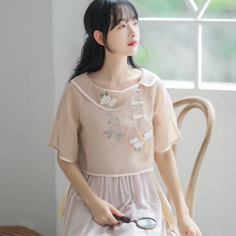 复古国风少女刺绣罩衫+吊带刺绣连衣裙两件套仙女超仙甜美森系夏