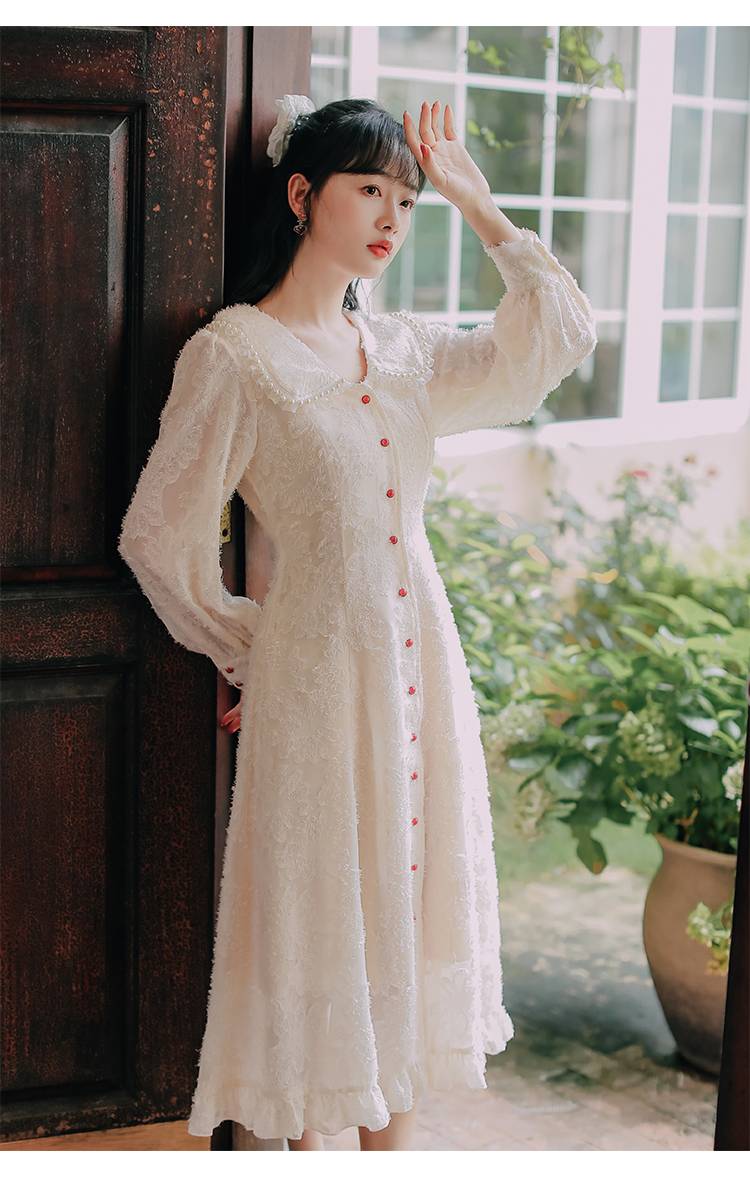 2021年春季新款连衣裙爆款小个子宫廷复古法式长袖温柔风气质长裙
