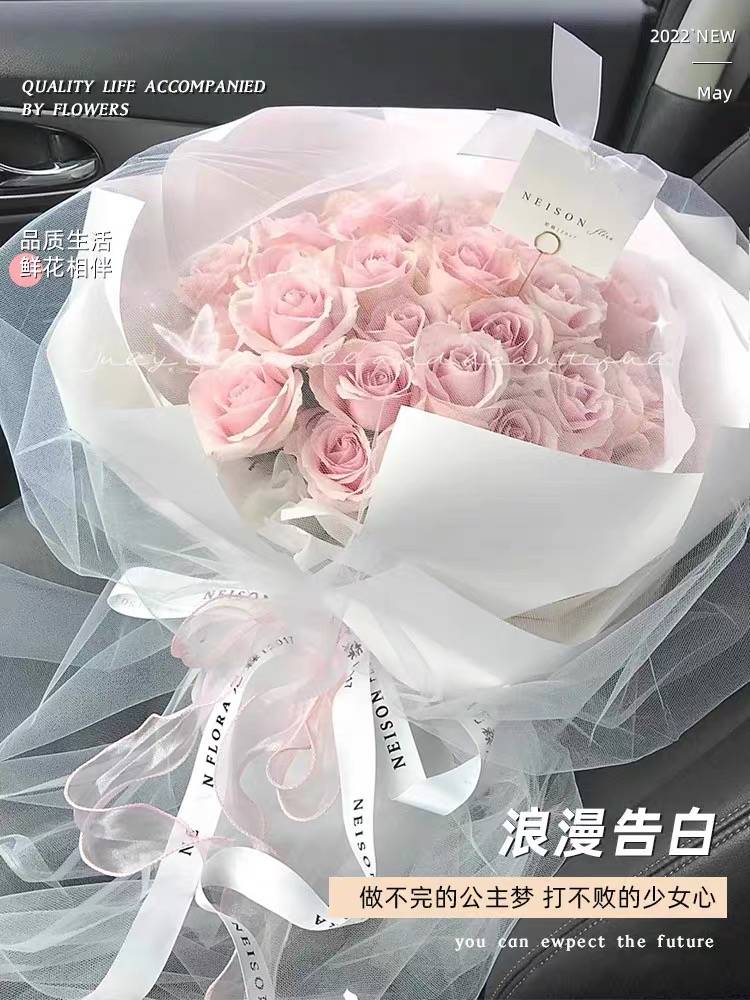99朵粉色玫瑰同城当日送达情人节七夕生日鲜花花束想和你做100件浪漫的事 从捧花见面开始