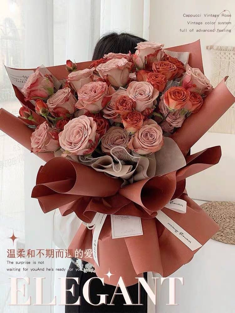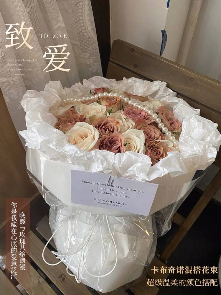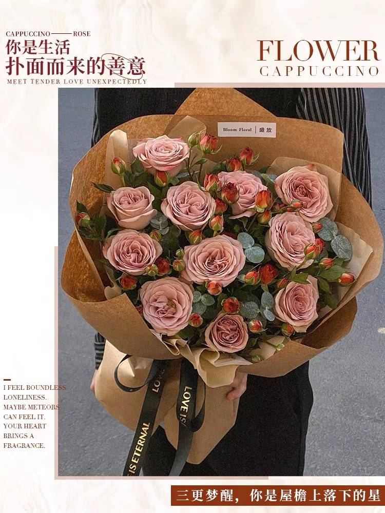 卡布奇诺玫瑰花束鲜花速递同城配送北京上海广州南京送女友生日