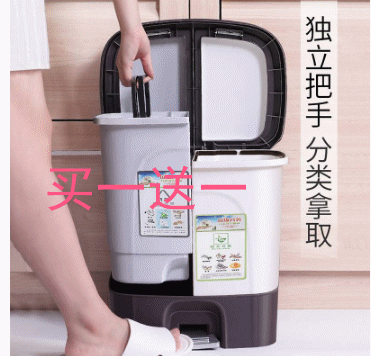 干湿分离垃圾桶 厨房分类脚踏厨余桶家用客厅分体式带盖垃圾筒