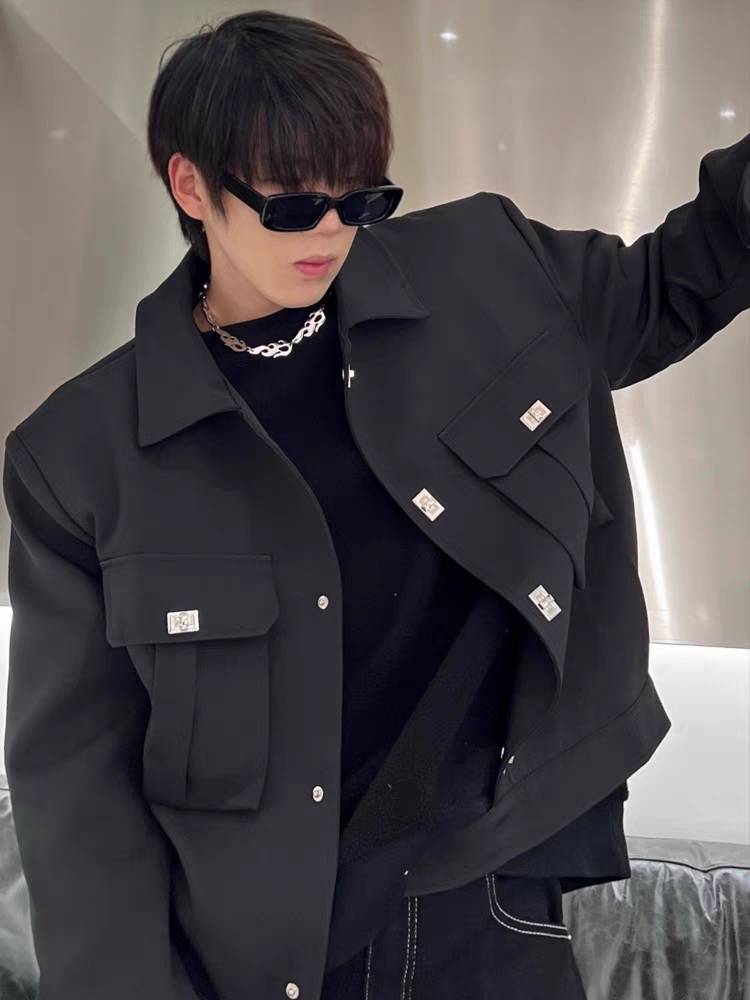 高级感垫肩短款cleanfit外套男春秋小众国潮高街正肩vibe机车夹克