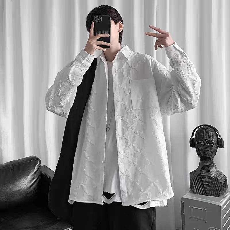 2022年春夏季发泡印花纯色衬衫男高级感痞帅韩版潮流宽松衬衣外套