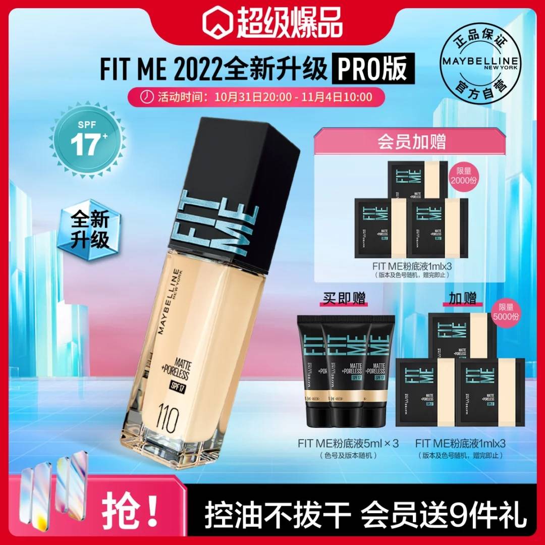 美宝莲 【FITME粉底液PRO版】混油天菜轻薄遮瑕哑光控油水润保湿