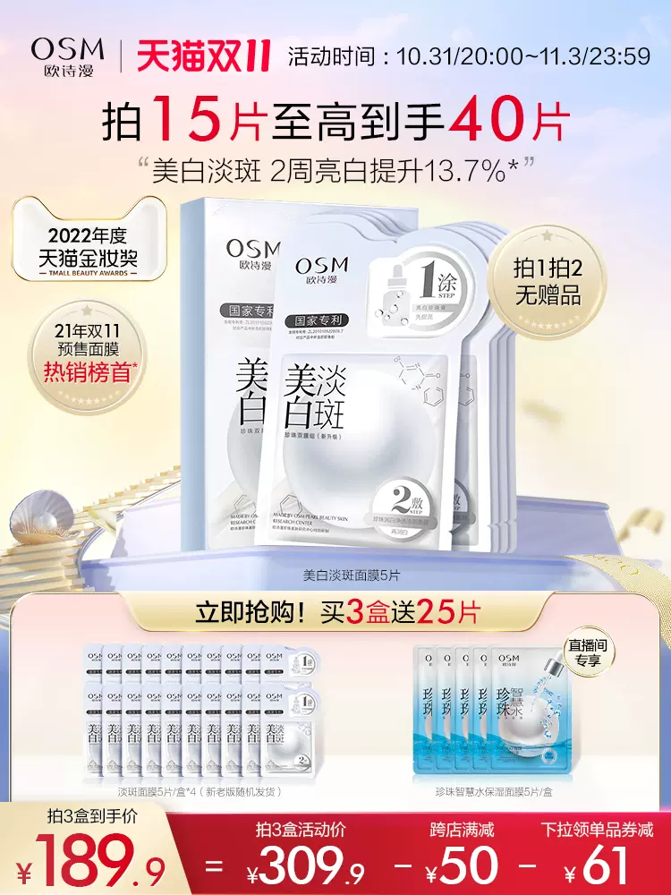 欧诗漫美白淡斑面膜补水保湿烟酰胺护肤品女李佳琦推荐