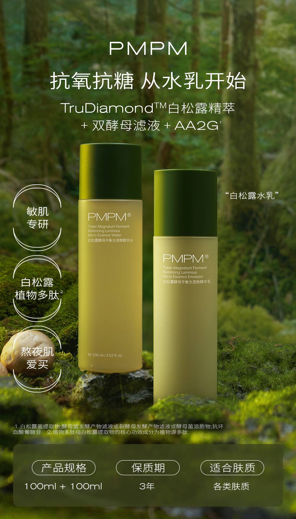 PMPM白钻松露酵母精华提亮水乳套装补水保湿女敏感肌100ml+1