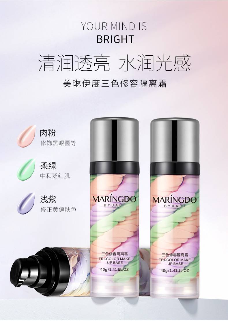 美琳伊度三色彩虹隔离霜女自然服帖妆前修容遮瑕提靓肤色清爽水润
