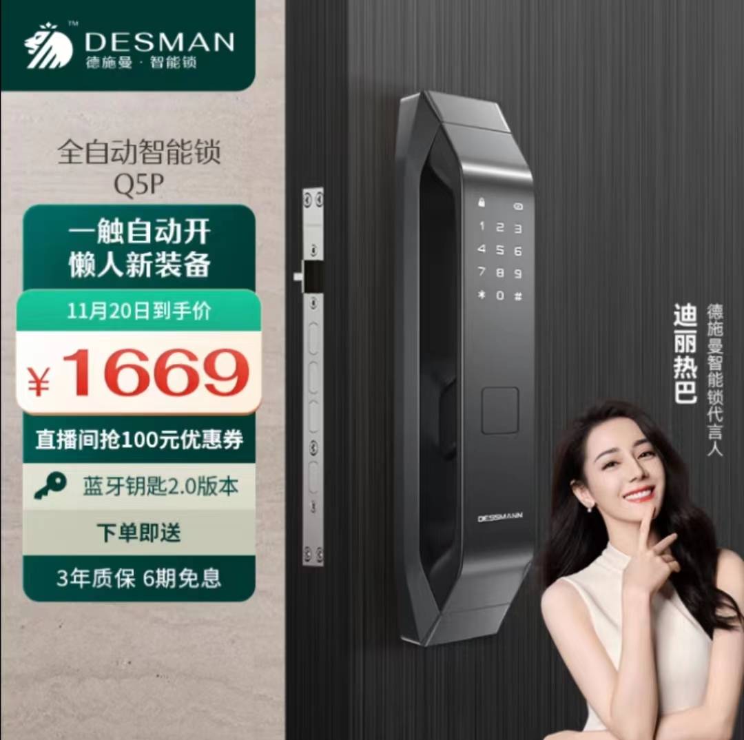 德施曼 全自动智能锁指纹锁防猫眼 免费安装(Q5P) 1669.00 已售:5件