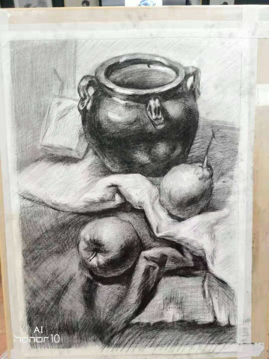 可手绘素描静物作业等,时间平均一天一张,下班备注写生图片或者临摹图片