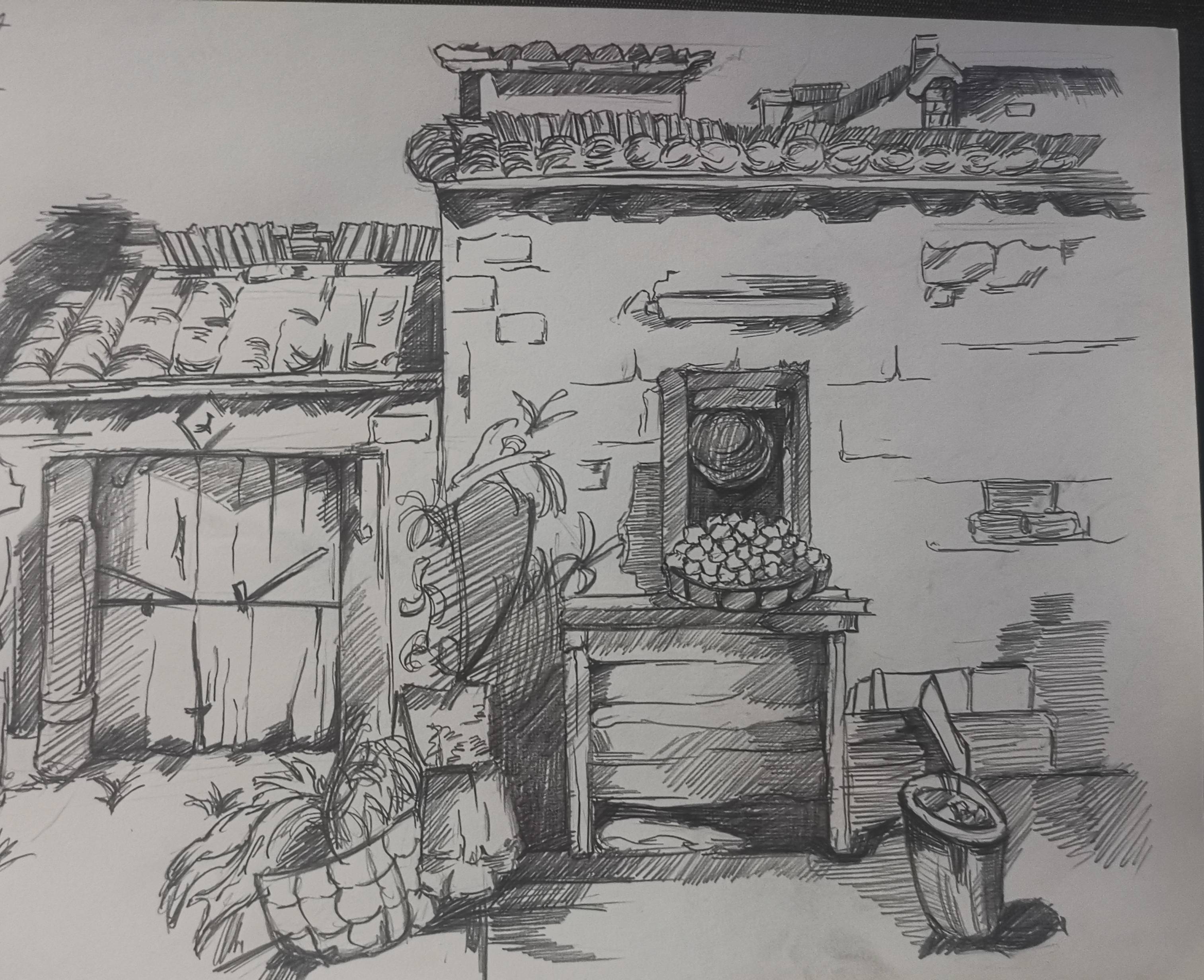 手绘场景速写,平均一张十分到二十分钟不等