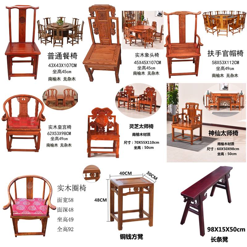 中式全实木餐椅象头椅圈椅家用榆木椅明清古典椅子简约饭店餐桌椅