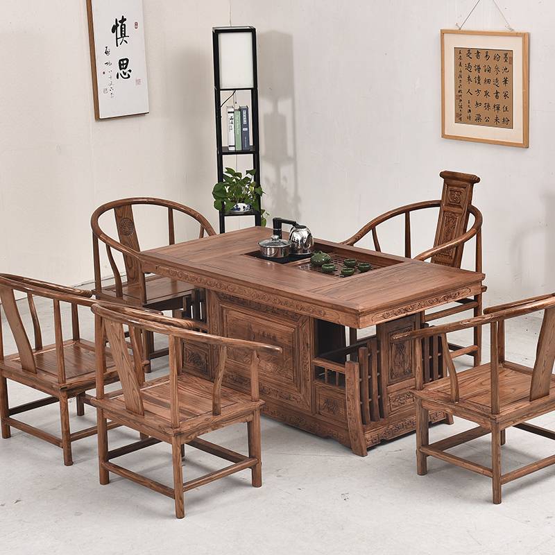 实木茶桌椅组合南榆木功夫茶新中式茶台茶道桌客厅茶几战国茶桌