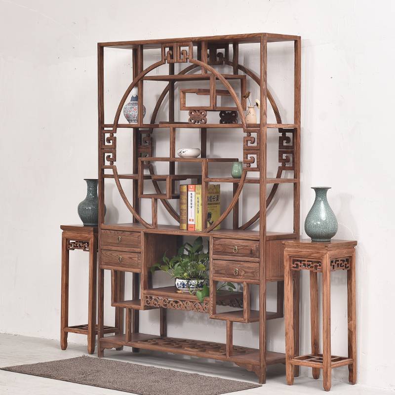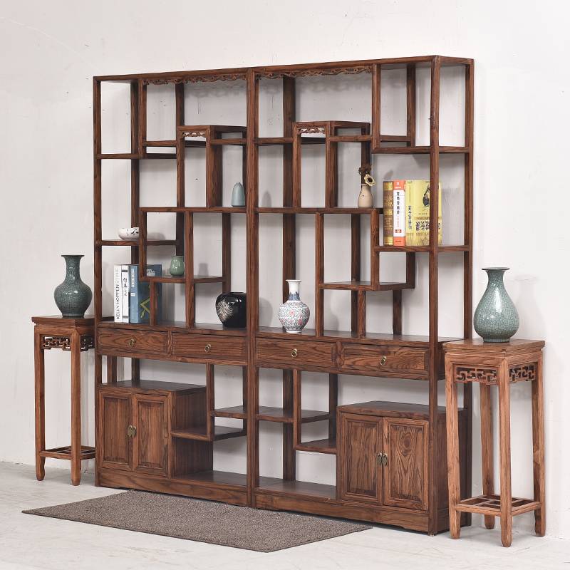 明清仿古实木家具 南榆木双半圆拼接博古架 陈列架 展示柜