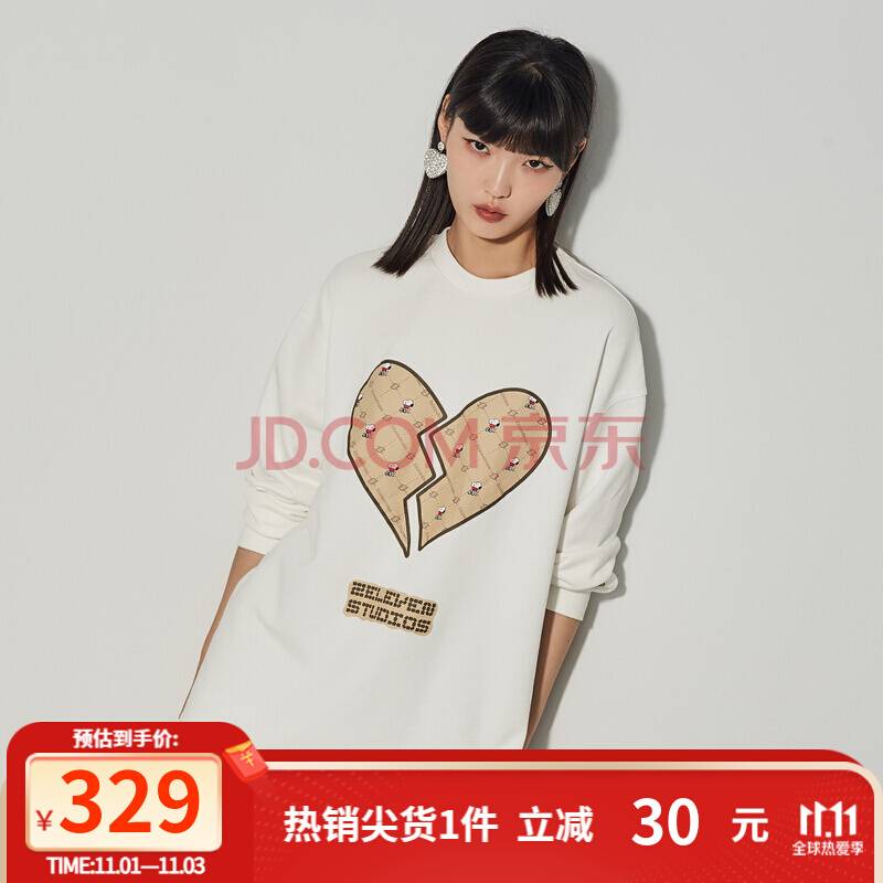 Z11女装2021秋季新款满印爱心袖口刺绣圆领卫衣 米白