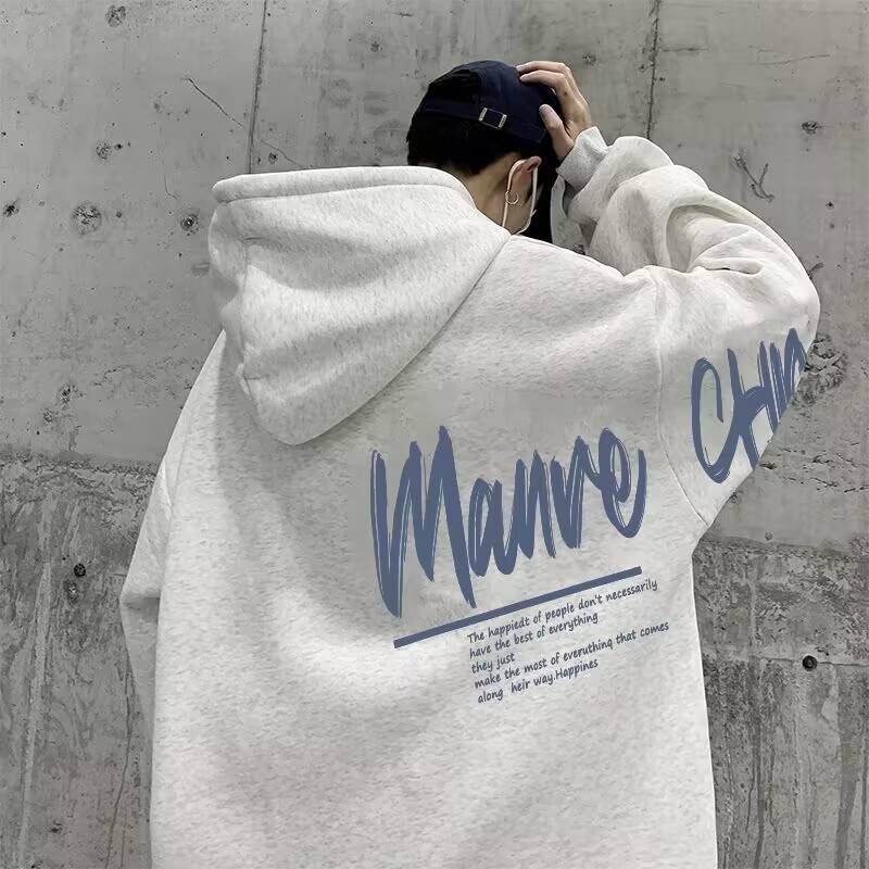 美式重磅加绒卫衣男秋冬季高街字母连帽外套潮牌宽松加厚保暖帽衫