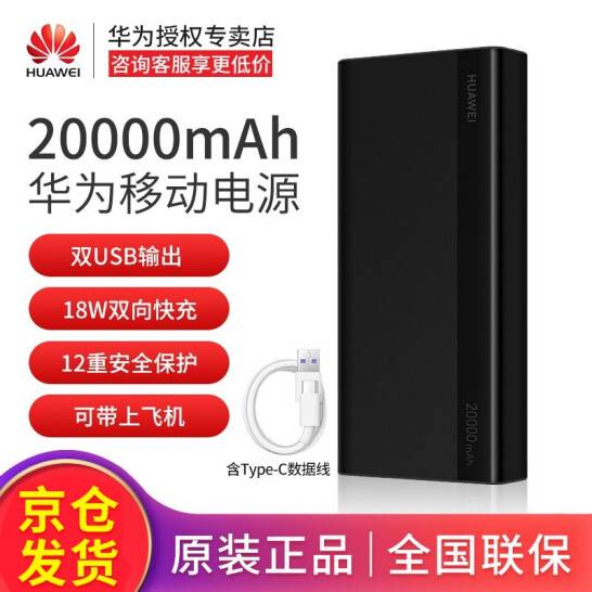 华为HUAWEI 原装20000mAh移动电源大容量充电宝 双口/双向快充/可上飞机 Mate/Nova系列/荣耀手机