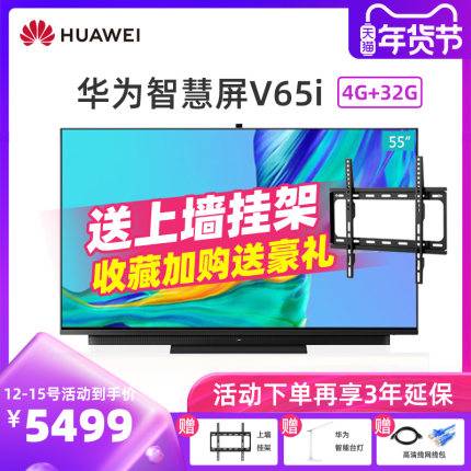 华为智慧屏 S 65” 120Hz 65英寸 4K超薄全面屏 AI智能游戏液晶电视机 3GB+16GB儿童哭声检测可视门