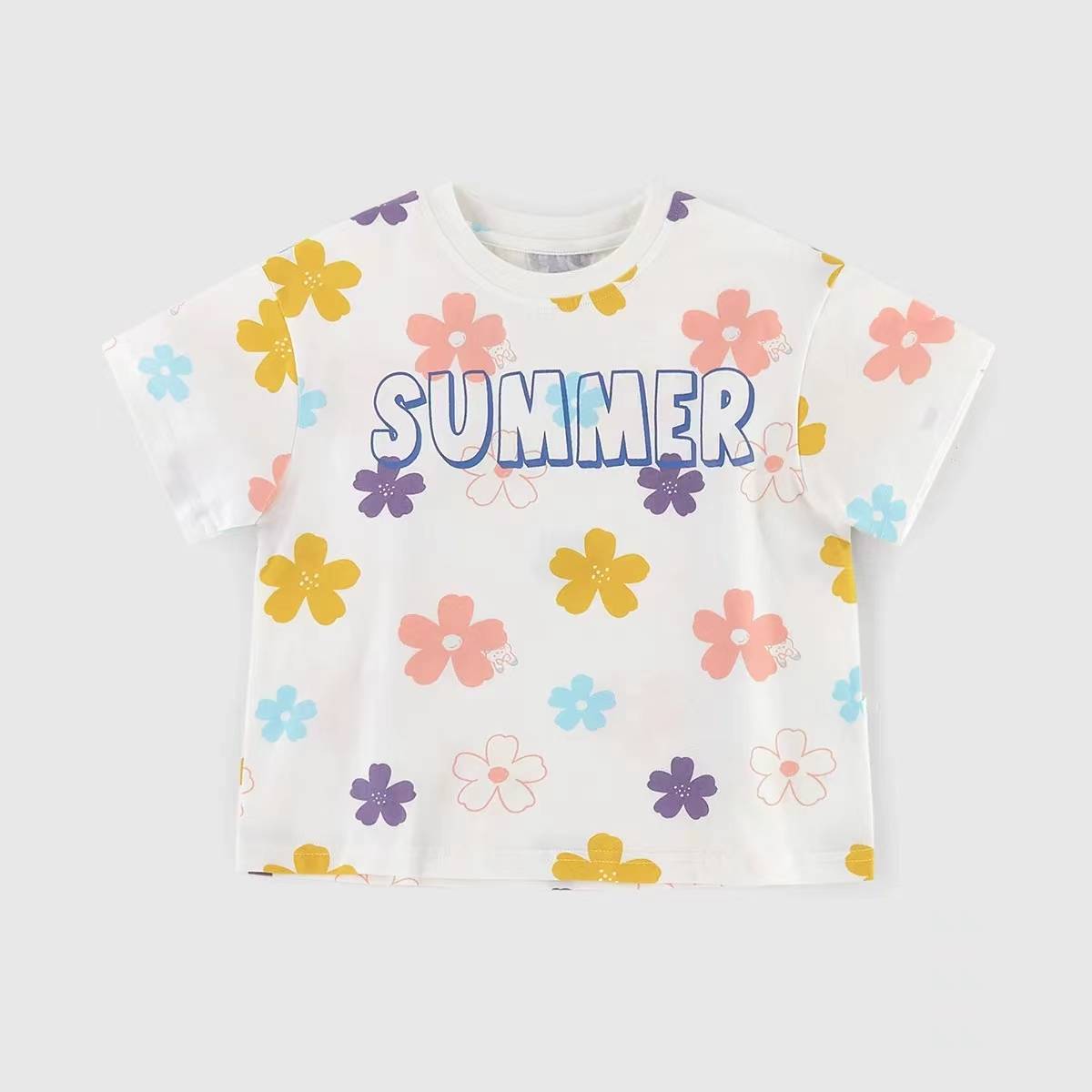 JELLYBABY 【花朵满印】2022年夏季新款儿童童装上衣女童短袖T恤