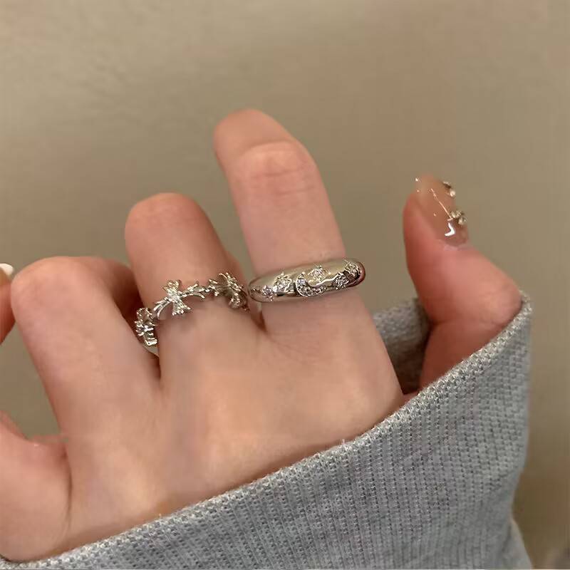 月清浔月光石不规则甜酷高级感两件套开口戒