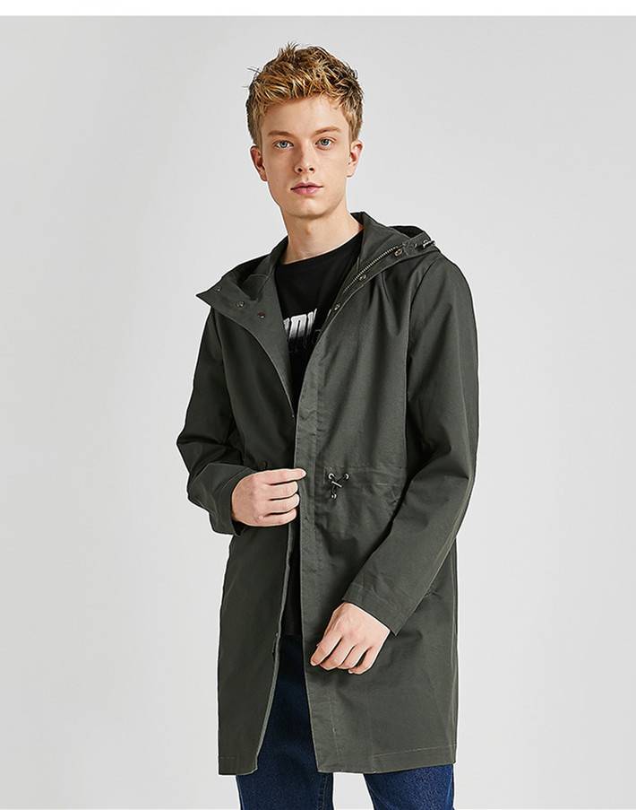 男装2018秋季新款中长款黑色过膝抽绳连帽风衣外套男