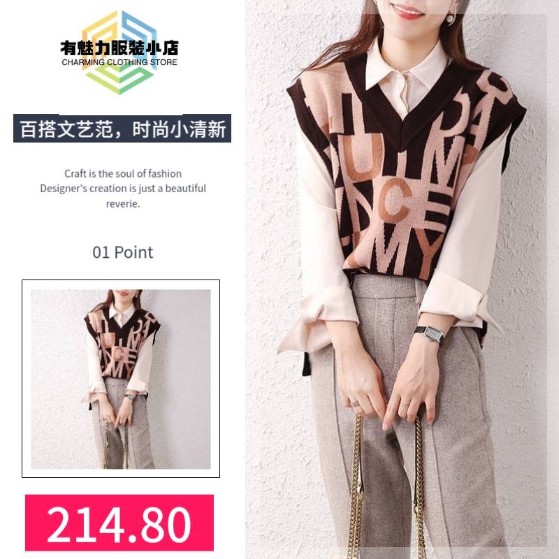 2020秋冬新款坎肩提花休闲背心欧美修身羊毛衣女套头针织马甲女 214.80 已售:0件