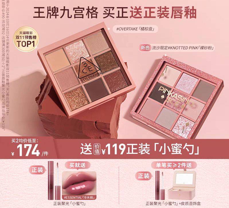 3ce 九宫格哑光大地色 灰粉色新手眼影橘棕盘