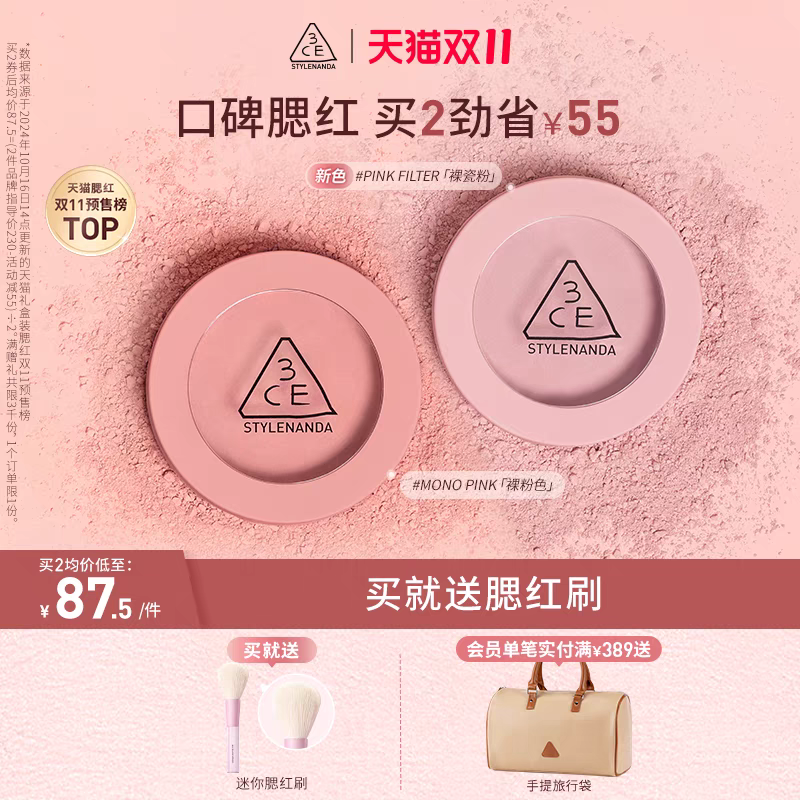 3ce 单色腮红 小方块膨胀收缩高光修容多用