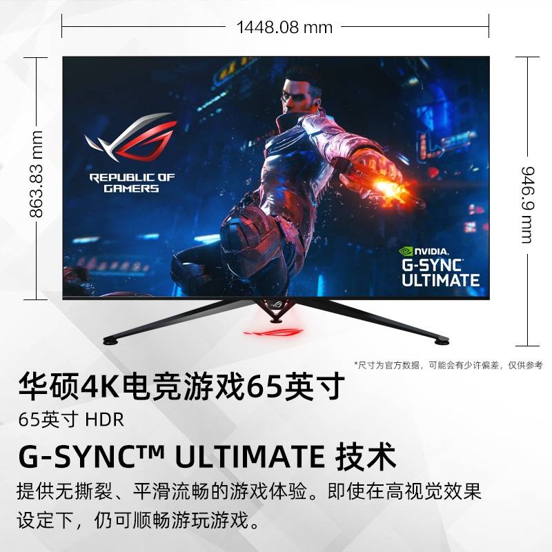 ROG/玩家国度 PG65UQ台式电脑HDR显示器4K 144HZ电竞吃鸡液晶显示屏幕swich外接PS5显示屏