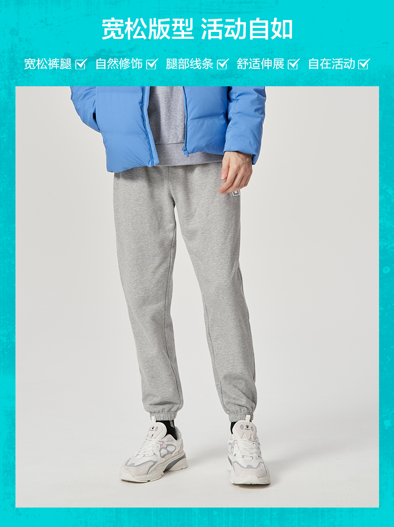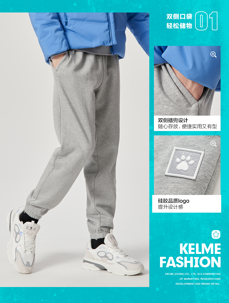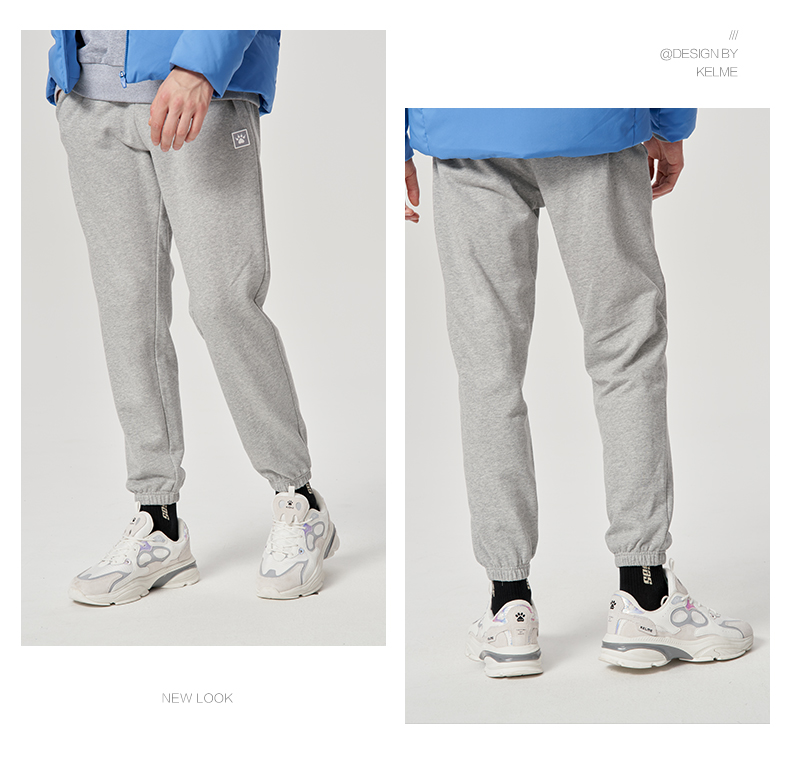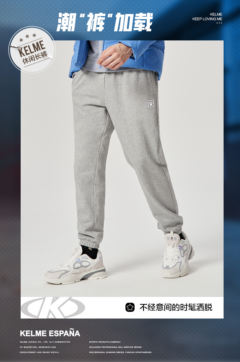 KELME卡尔美灰色运动裤男2021秋冬款针织纯棉休闲宽松束脚卫裤女