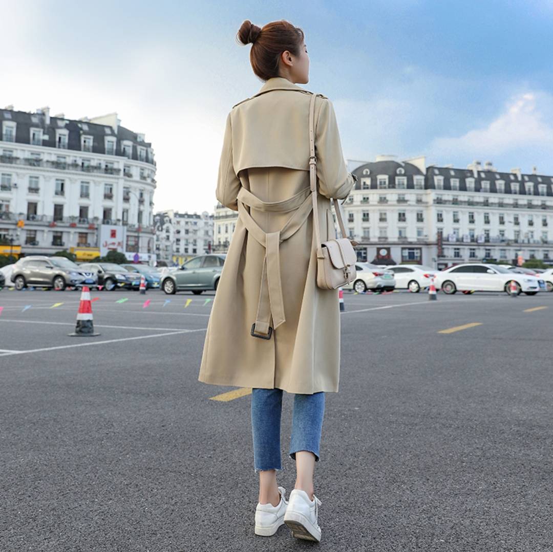 2019秋季新款品牌女装英伦气质纯色长袖西装领双排扣女式风衣外套 226.80 已售:0件