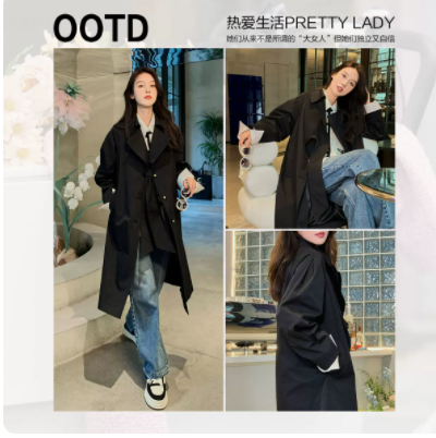 太平鸟风衣外套女早秋中长款2022年新款高级感黑色风衣大衣外套女