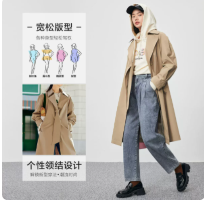 太平鸟风衣女中长款2021年冬新款英伦风小个子今年流行风衣外套女