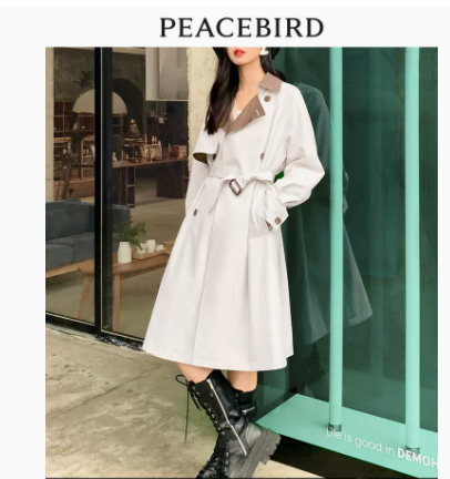 太平鸟风衣外套小个子女2022春季新款米白中长款风衣